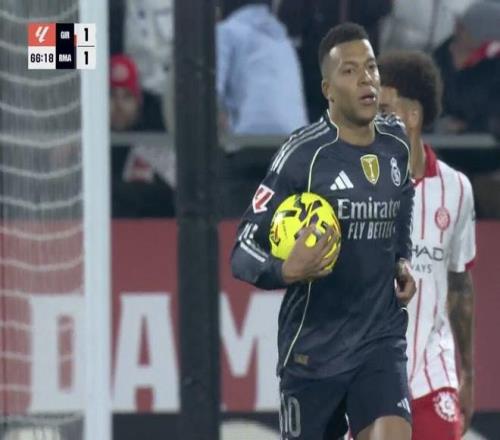 此役客场对阵赫罗纳,姆巴佩在比赛第67分钟主罚点球破门,帮助皇马扳平比分。
