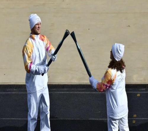世界摔跤冠军库吉乌姆齐迪斯首先手持圣火进入体育场,火炬先后被传递给来自意大利的网球奥运冠军保利尼和自行车运动员甘纳。随后,希腊水球选手克塞纳基接过圣火,与队友共同点燃体育场内的圣火炉。