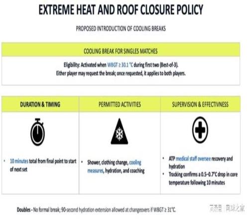 ATP 董事会已批准自 2026 赛季起实施新的高温规则。主要条款如下: