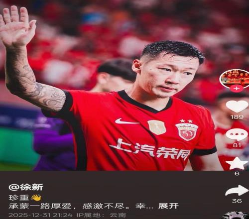 在赛季结束后不久便有消息传出,徐新即将离队,下家是云南玉昆。值得注意的是,徐新发文告别上港时,IP显示正是云南。云南玉昆已于20日开启冬训,多名新援被拍到参加球队训练,不过并没有拍到徐新。
