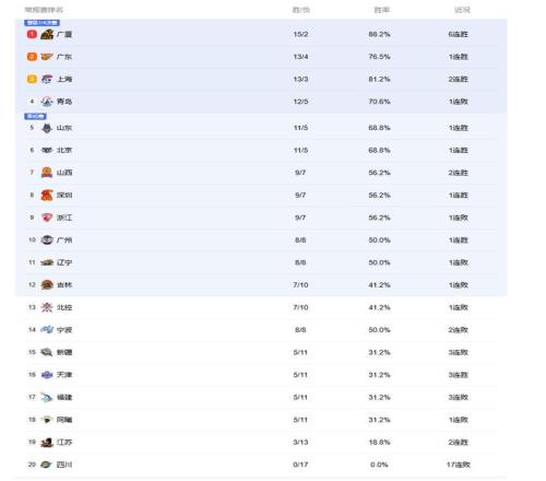 CBA最新积分榜出炉!广东逆袭重回第2,北京第6,辽篮第11